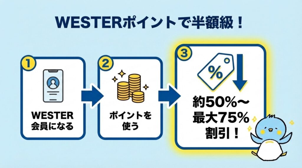 キャンペーン時には、「WESTERポイント超特典きっぷ」が登場し、最大75%OFFになることも。
