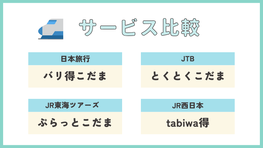 こだま指定席きっぷサービス比較(バリ得・ぷらっと・とくとく・tabiwa得)