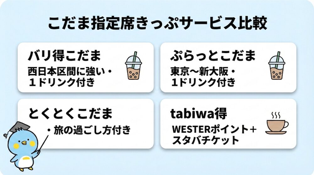 ぷらっとこだま・tabiwa得・こだま指定席きっぷの特徴と違い