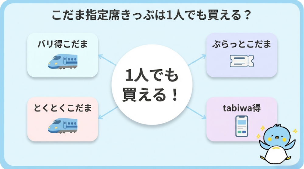 こだまの格安きっぷには、1人で買えるものと買えないものがあります。