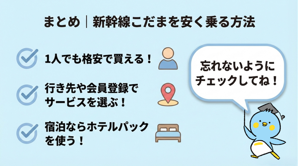 まとめ|1人でも往復でもお得に!新幹線こだまを安く乗る方法