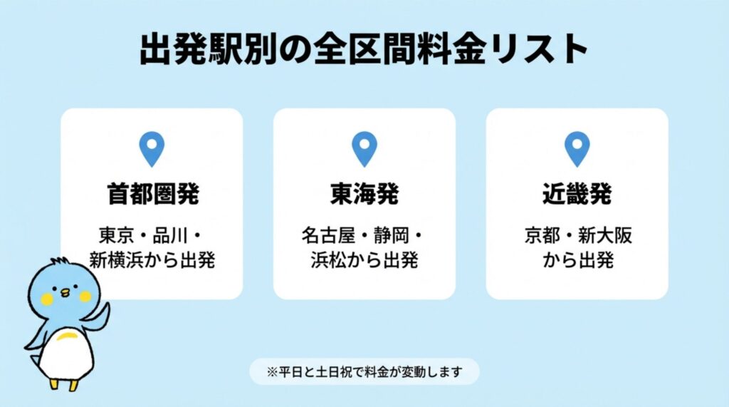 出発駅別の料金リストをまとめました。
