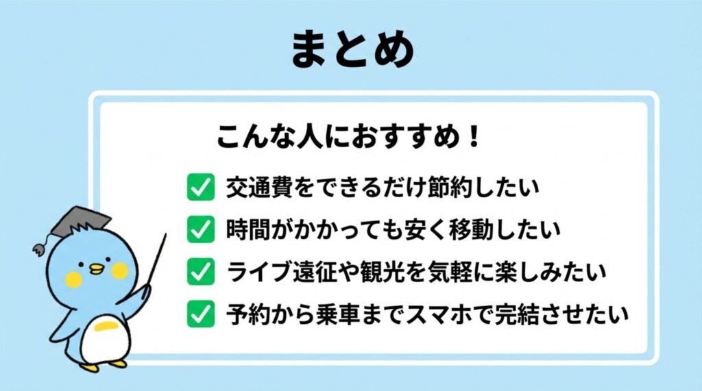 観光はもちろん、ビジネス、ライブ遠征などにもおすすめです。