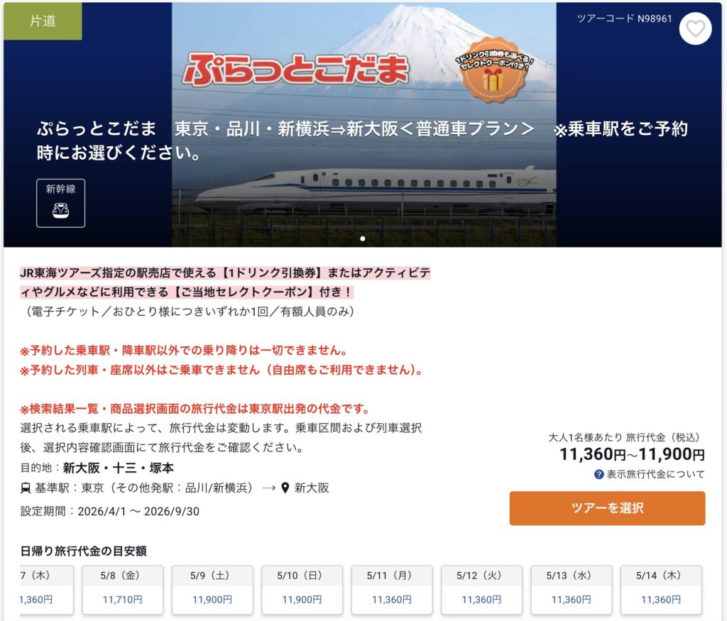JR東海ツアーズで購入する場合