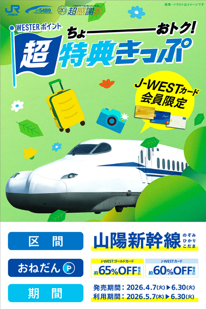 J-WESTカード会員限定:山陽新幹線の超特典きっぷ