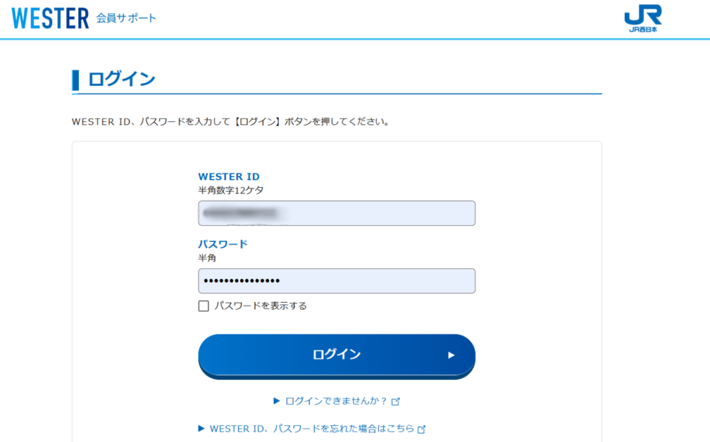 入力内容確認後、WESTER会員のログイン認証が行われます。