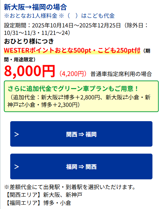 しかも、1名からOK・片道利用OK・WESTERポイント500pt付きと特典も充実。