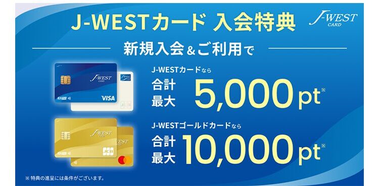J-WESTカードは最大5,000pt、J-WESTゴールドカードは最大10,000ptです。