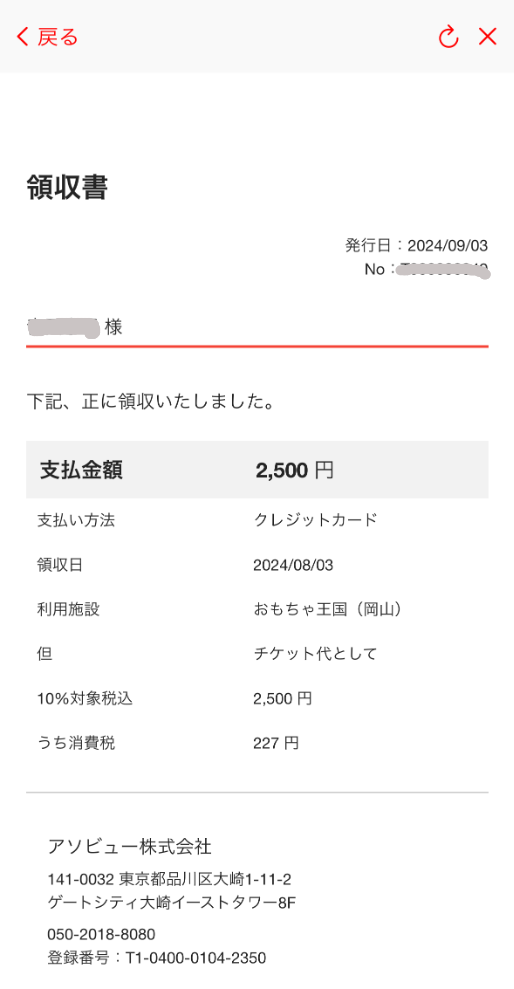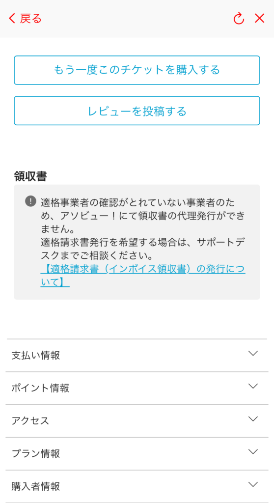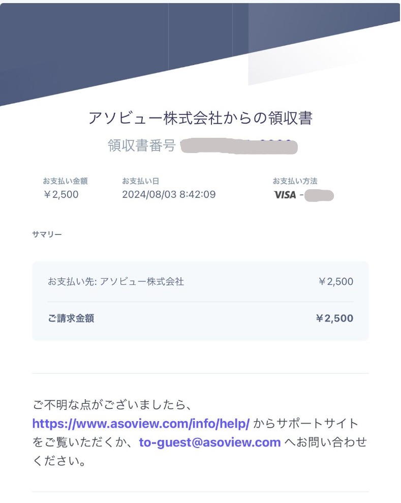 アソビュー!のメール認証が完了している場合、 そのメールとは別で自動メール送信にて領収書が送付されます。