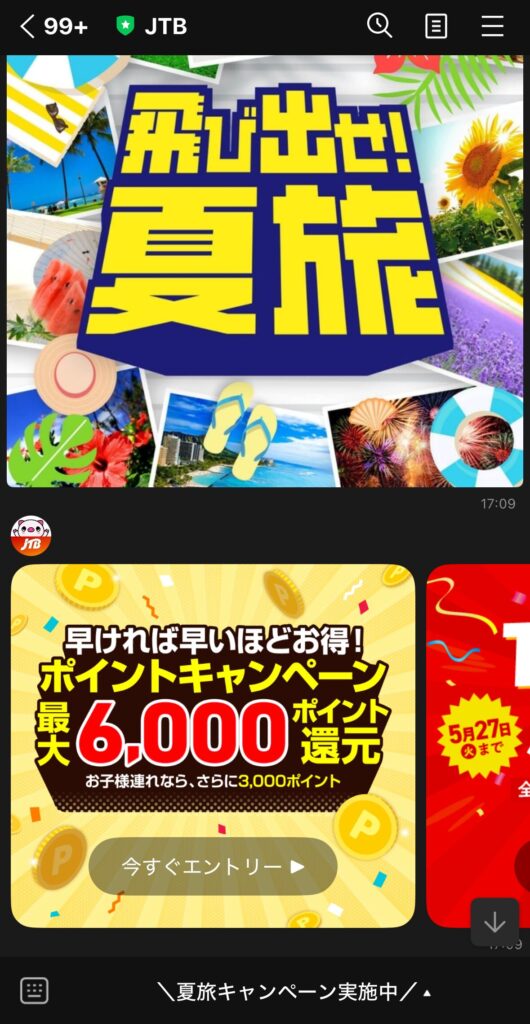 JTBのLINEアカウントではクーポンの直接配布はありませんが、お得情報や最新キャンペーンをいち早くチェックできる便利ツールです。