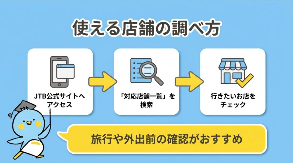 実際に使えるのはJTB店舗やJTBのオンライン予約に限られます。