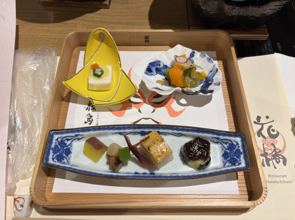 こんぴら名物の灸まんがお部屋に置いてあり、地域らしいおもてなしも感じられました。