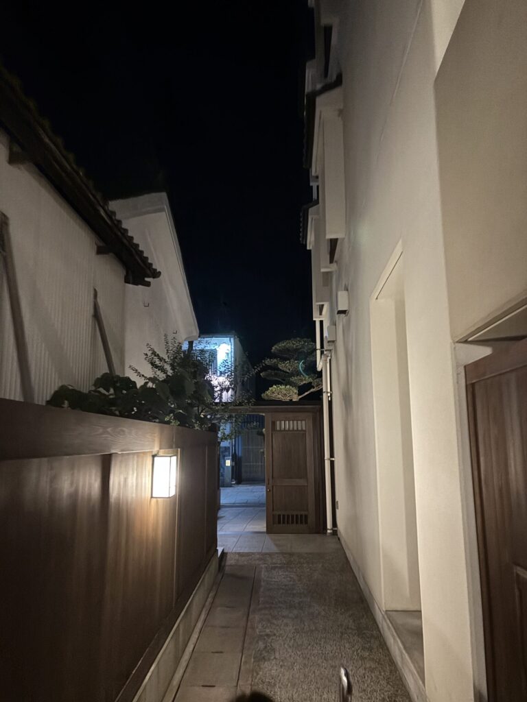 夜は人通りが減った表参道に宿の灯りが反射して、幻想的な雰囲気に。この景色を楽しめるのは宿泊者だけの特権です。