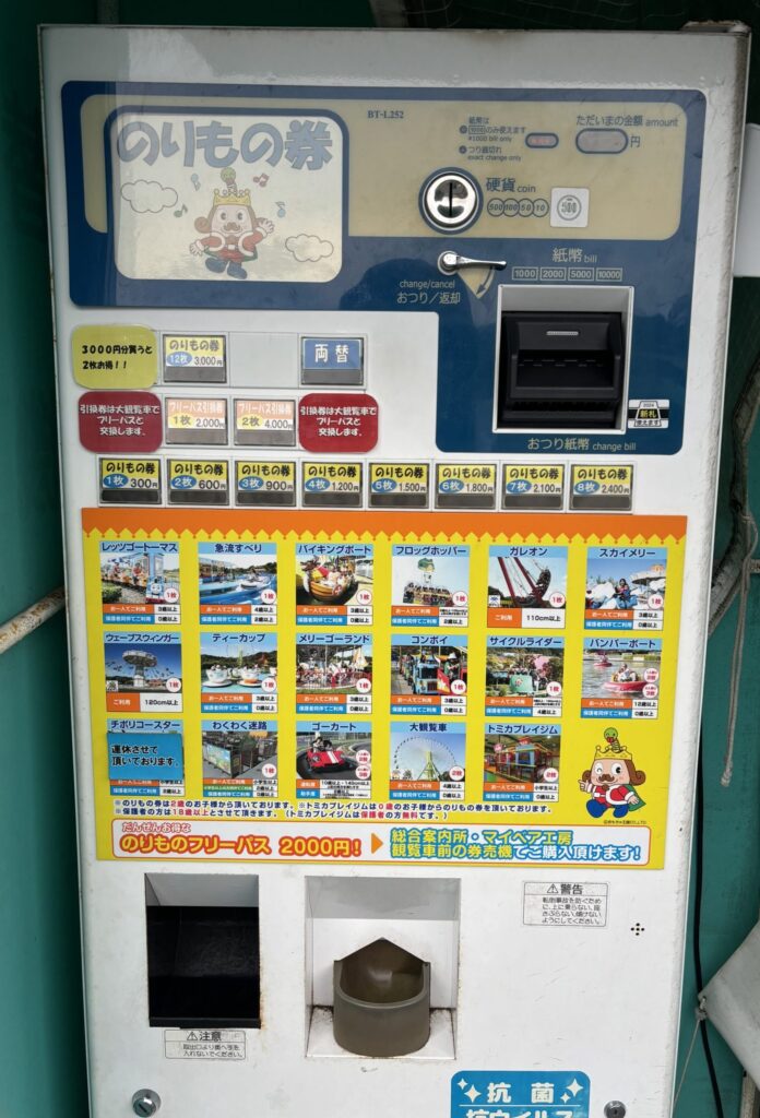 園内の各エリアにのりもの券の発券機が置いてあります。