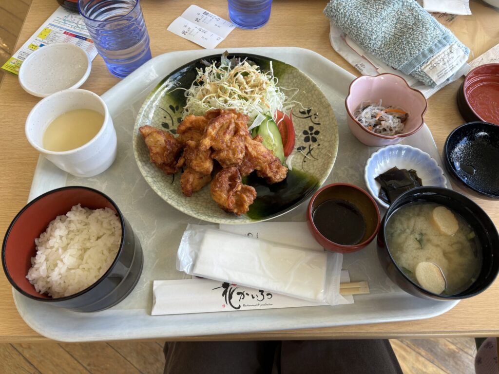 鳥取県産「大地のハーブ鶏」の唐揚御膳や鳥取県産大山豚使用のロースカツ御膳を注文しました。