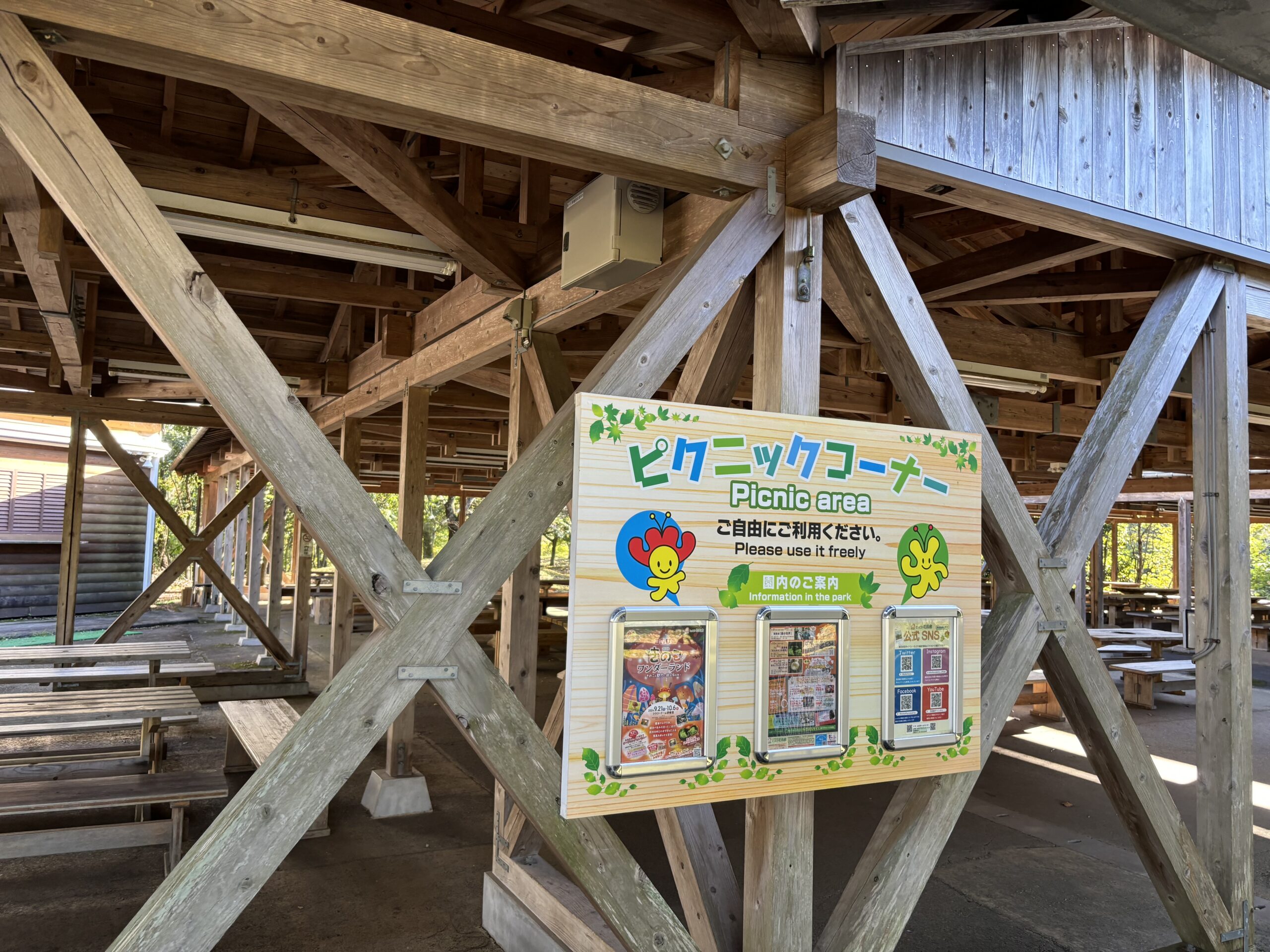 花の丘近くにあるピクニックコーナーでは飲食できるスペースが完備されています。
