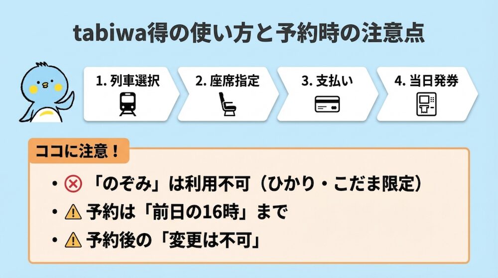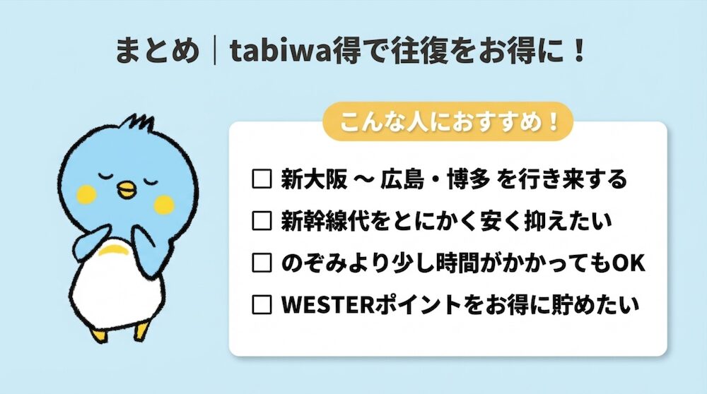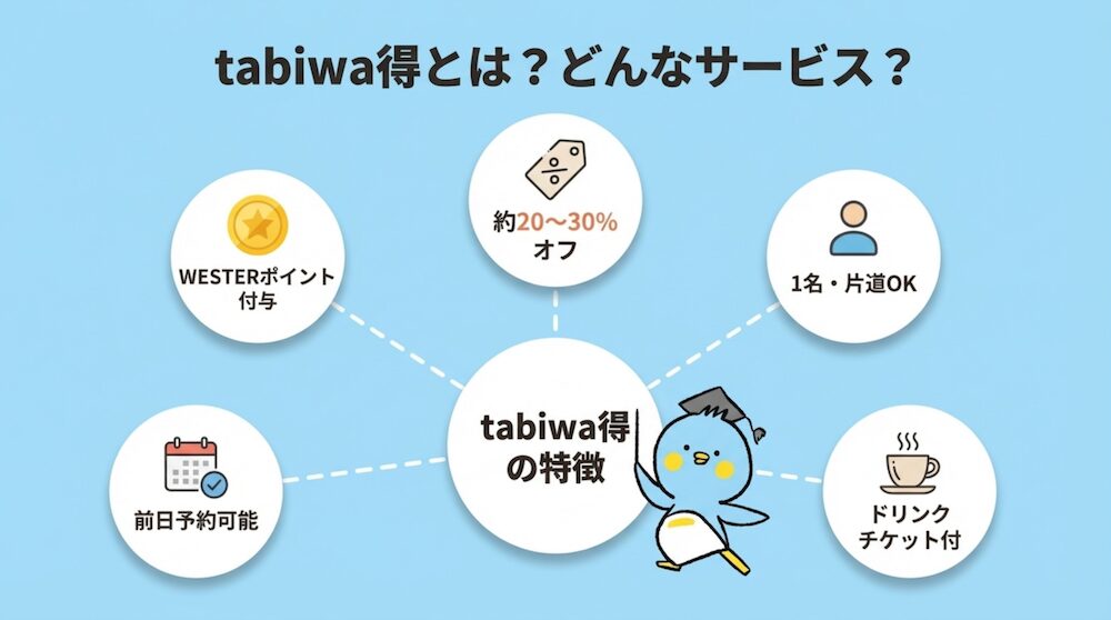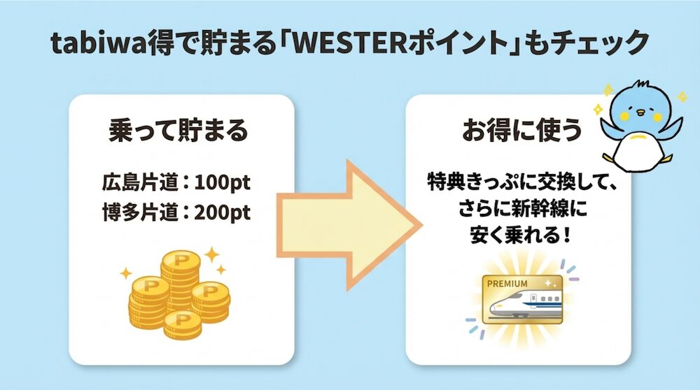 この記事では、 WESTER会員限定の格安新幹線きっぷ「tabiwa得」 の特徴・料金・特典をわかりやすくまとめました。