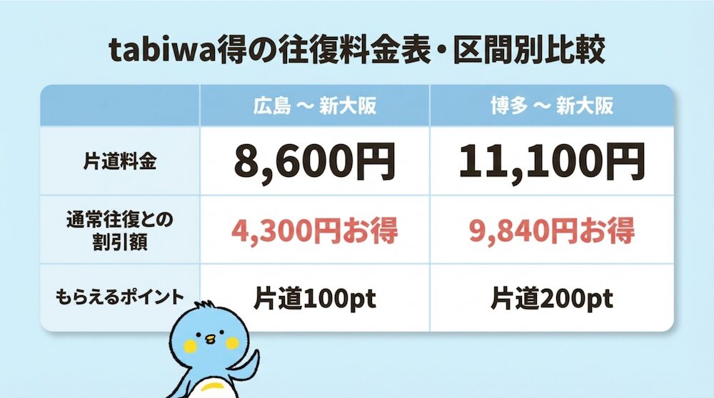 tabiwa得の往復料金表・区間別比較