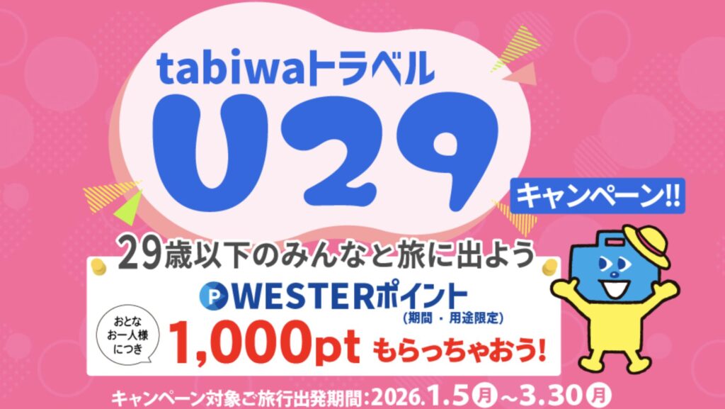 tabiwaトラベルで予約すると、WESTERポイントがもらえるキャンペーンを実施中。