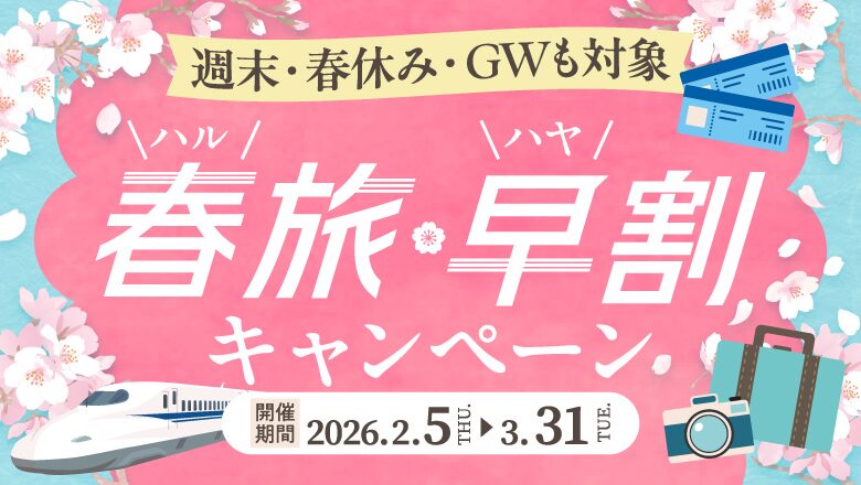 予約上限に達し次第終了となります - 対象プラン:関西発・北陸発・中国発・九州発・首都圏発・中部発のJR・新幹線+宿泊パック、国内ツアー
