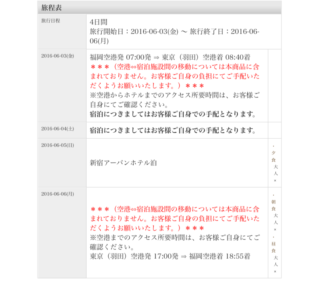 | 個別予約 | 39,740円〜 宿泊9,900円〜 | 35,840円〜 宿泊6,000円〜 | 33,840円〜 宿泊4,000円〜 | 29,840円 |