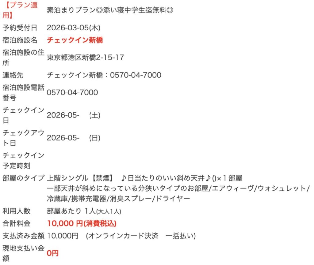 - ビジネスホテル(都内):週末 1泊 2万円〜3万円台