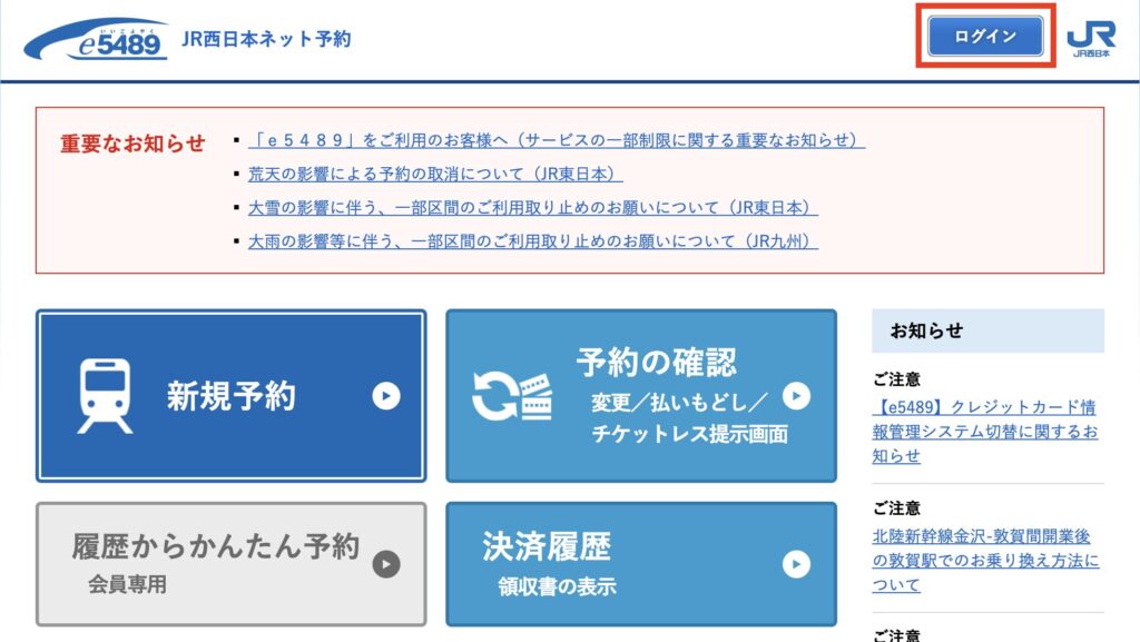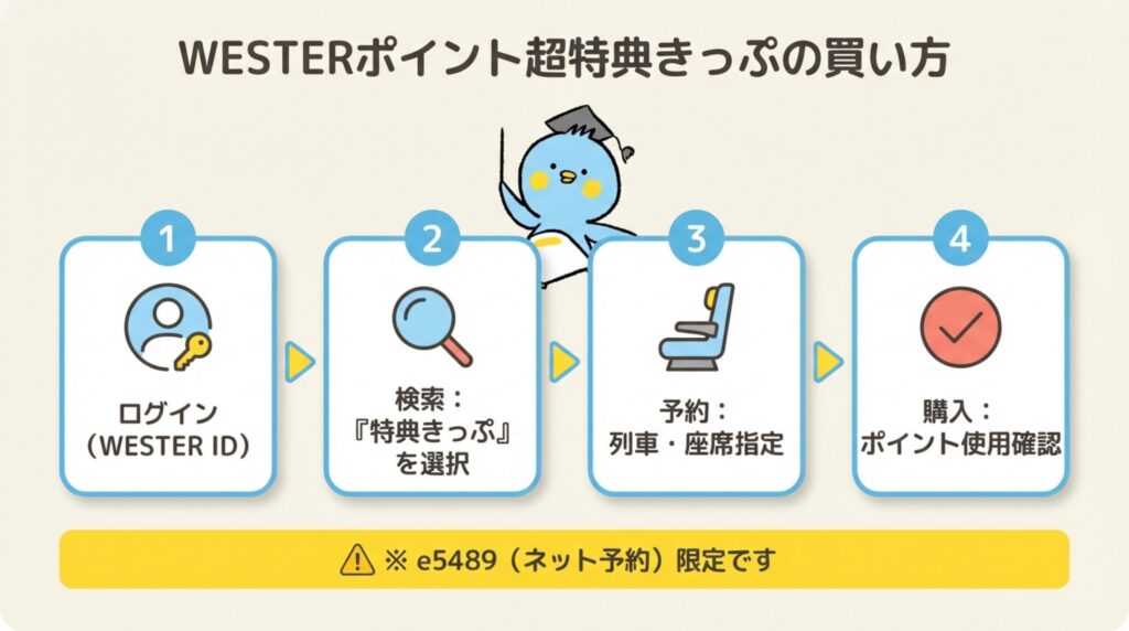 - 購入はJR西日本ネット予約(e5489)のみ:駅のみどりの窓口では販売なし