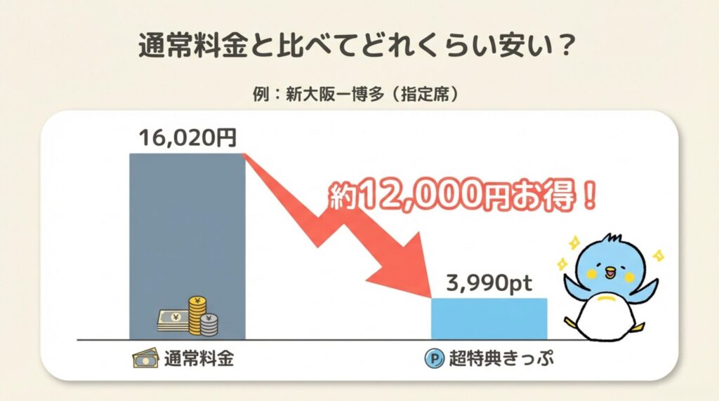 WESTERポイント超特典きっぷを使えば、新幹線を通常料金より大幅に安く利用できます。