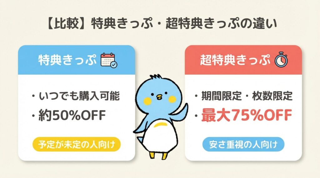 超特典きっぷと特典きっぷはどちらがお得ですか?